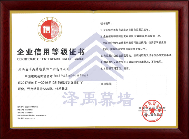 企業(yè)AAA級(jí)信用等級(jí)證書(shū)